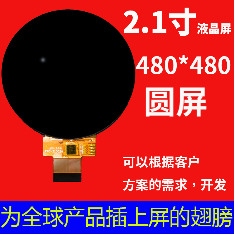 有需要2.1寸圆屏的客户可以联系我们,我们可以配合开发FPC,开模CTP,定制亮度,定制驱动板。
